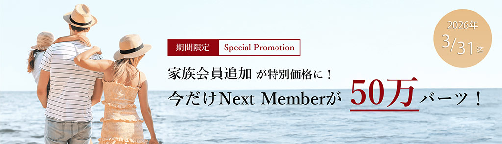 • 対象者:プラチナ、ダイヤモンド、またはリザーブプランの追加家族会員(Next Member)